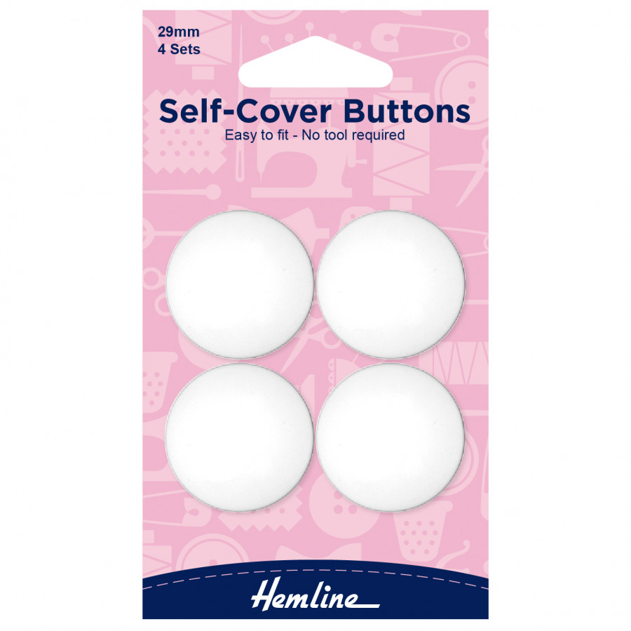 Cover these buttons with fabric to make special buttons which can personalise and decorate garments and accessories. Easy to fit snap-on back plate, no tools or sewing required. Nylon -29mm, 1 1/8in. 4 sets.