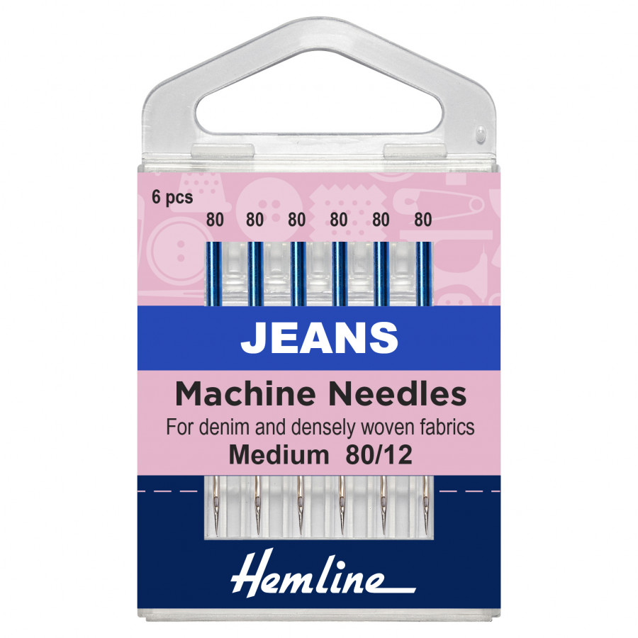 Ideally suited for denim fabrics, heavy twill, workwear and densely woven fabrics such as canvas and heavy linens. With a very sharp point and a stiffer shank to resist deflection to sew a straight stitch on thicker fabric. Size: 80/12.