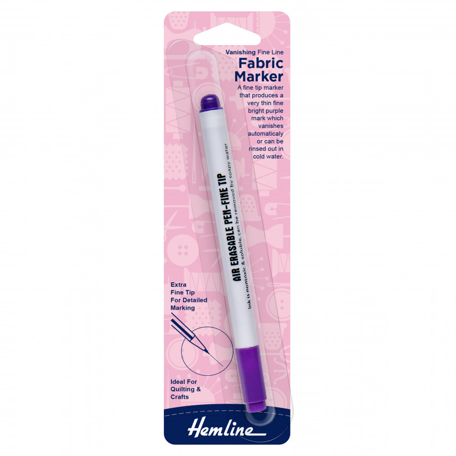 Extra fine violet tip for marking detailed designs and straight lines of stitching. No need to remove marks – they will disappear in 48 hours. Excellent for use with fabrics not suited to washing. If necessary, marks can be removed with a damp cloth or by rinsing in cold water. Useful for quilting, embroidery and needlecraft.