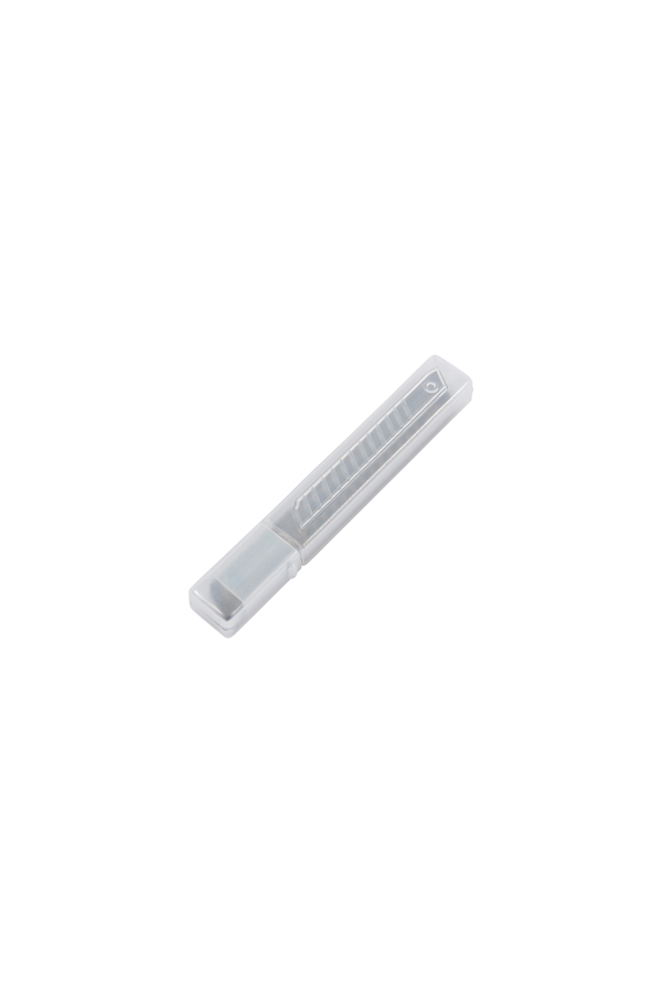 Plastic box containing 5 new replacement blades. Each blade has 13 snap-off sections.