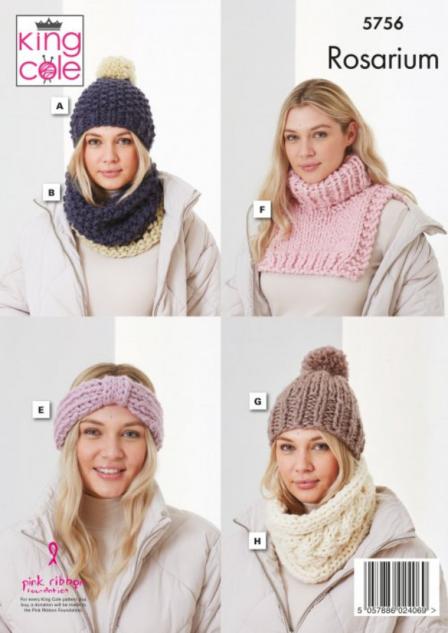 ‘- Hats, Headband, Snoods, & Polo Neck: Knitted in Rosarium Mega Chunky