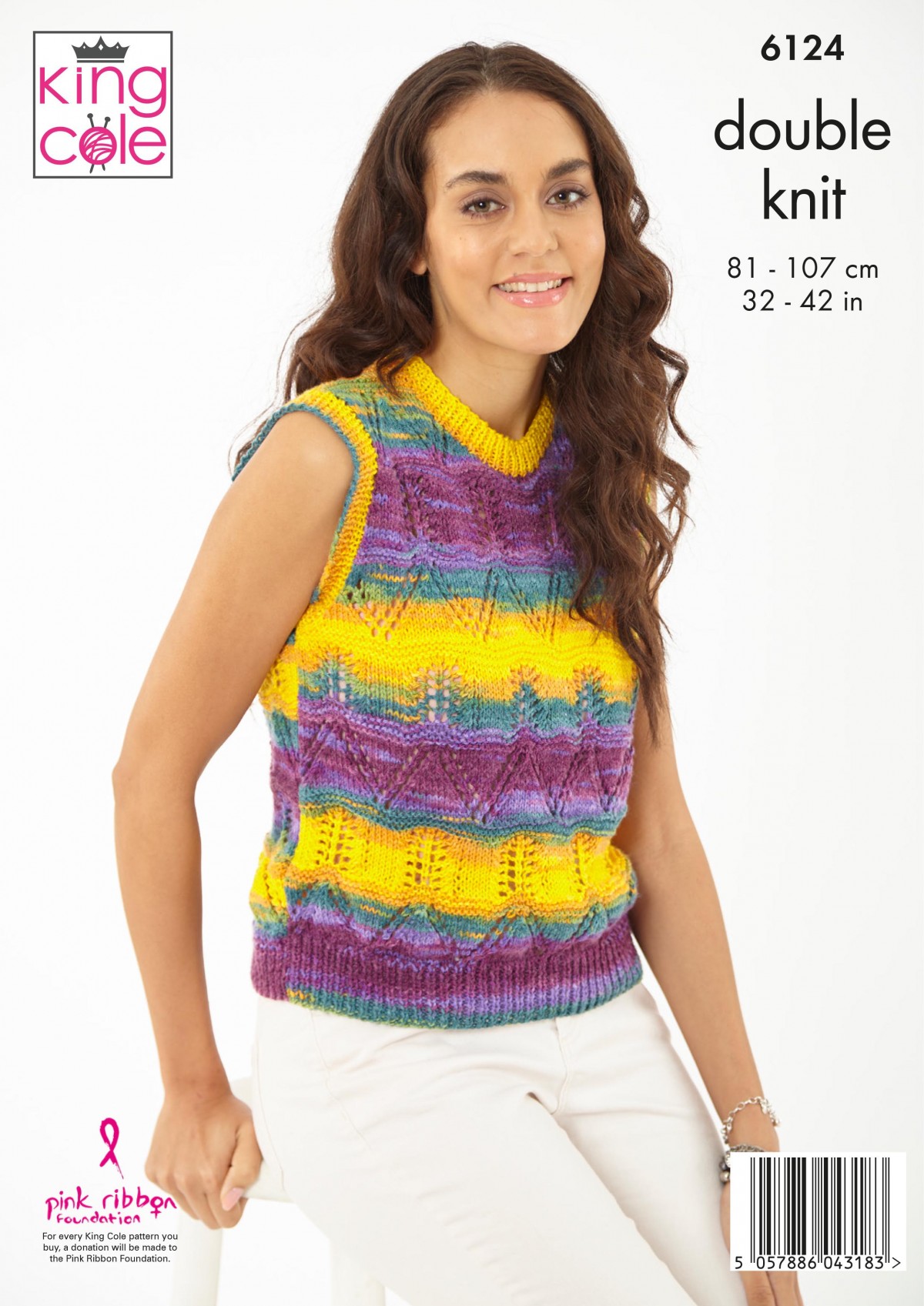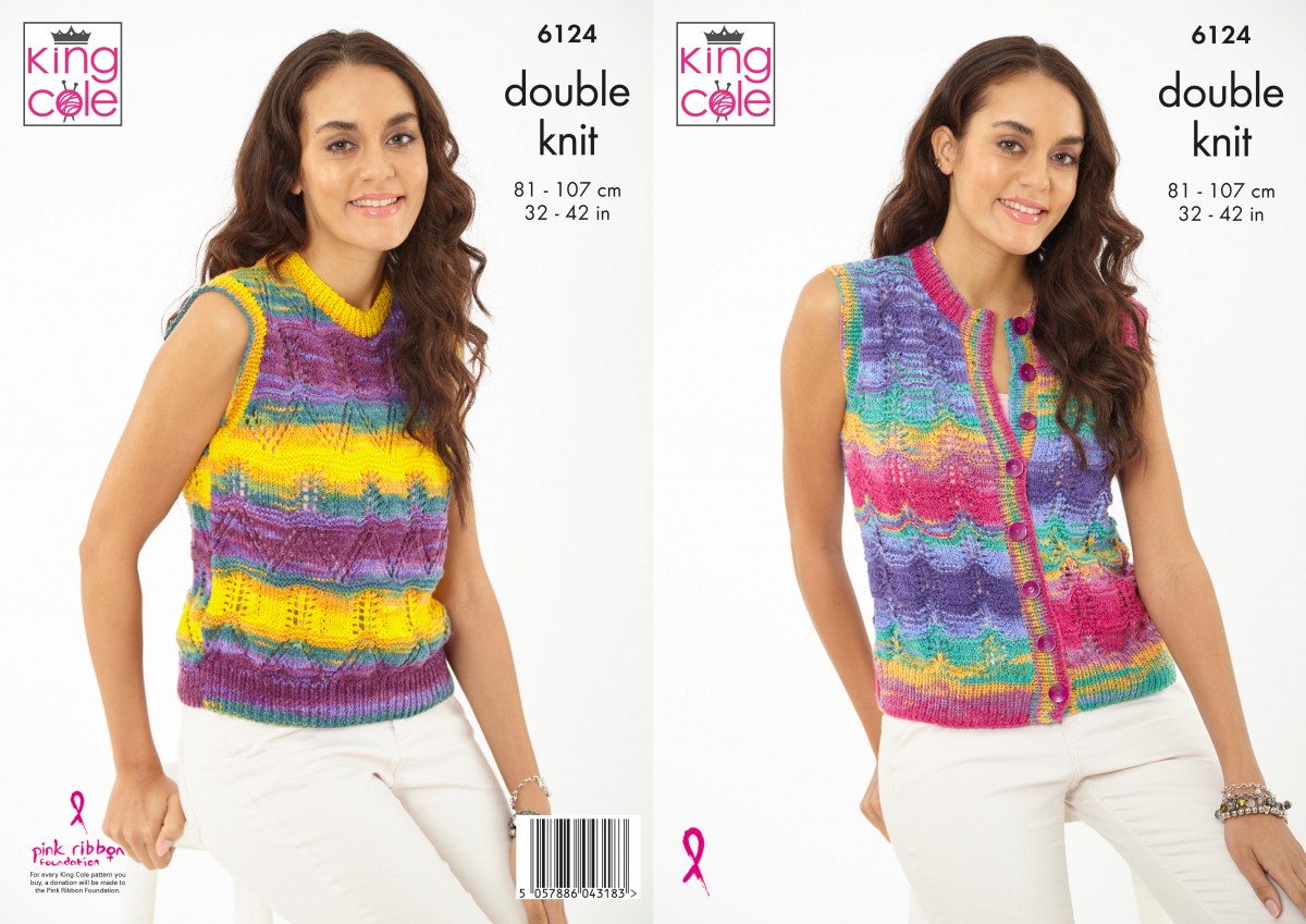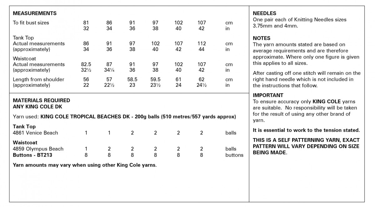 King Cole knitting pattern 6124. Pattern for tank top & waistcoat. Knitted in King Cole Tropical Beaches DK