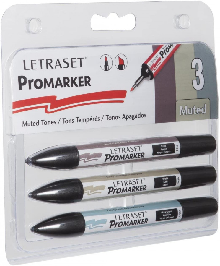 Set of 3 Letraset ProMarkers. Twin tipped. Alcohol based markers.