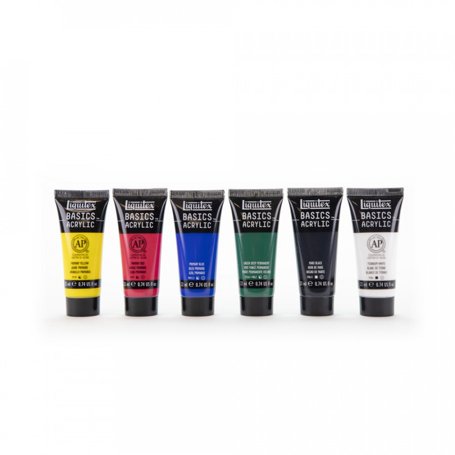 Liquitex BASICS are a student quality range, meaning that they give bright, even colour and mixability whilst using other less quality pigments than the professional range. This set would be suitable for arts and crafts projects requiring small amount of colour in lots of different shades or as a way to sample the range before investing in large amounts of paint.