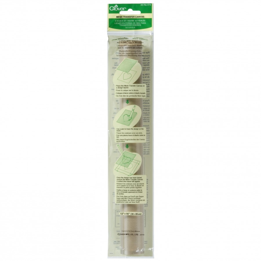 For transferring quilt lines, piece and application design layouts. Mesh transfer canvas that doesn’t need cutting. Place mesh on design, trace the design onto the mesh with pen. Trace from mesh to fabric with Clover Chaco pen.