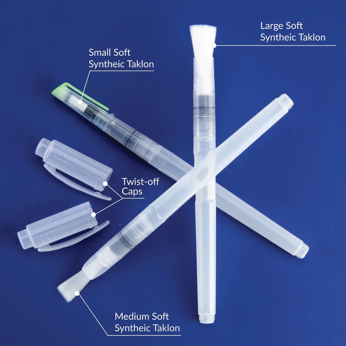 A unique way to create delicate watercolor effects, or, use without water for dry-brush painting, sketching, colouring, calligraphy and so much more.