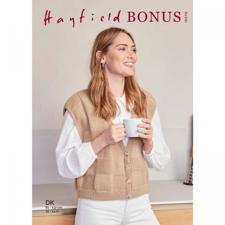 Designs included: Boxy Chequerboard Waistcoat In Hayfield Bonus DK.