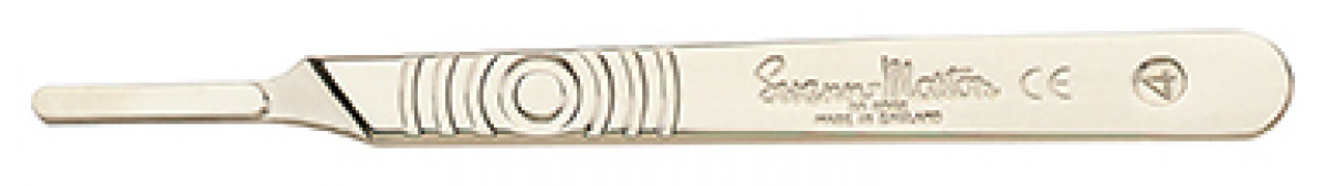 A stainless steel scalpel handle for use with the following Swann Morton blades – 20, 21, 22, 22A, 23, 24, 25, 25A, 26, 27.