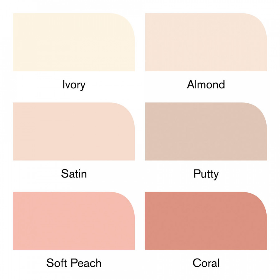 The Skin Tones Set #1 contains 6 colours: Ivory, Satin, Almond, Putty, Coral and Soft Peach.